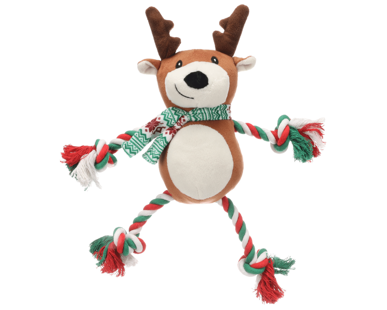 Le jouet Vicente le Caribou 🦌 de Flamingo allie douceur, solidité et plaisir grâce à sa corde intégrée et son couineur.